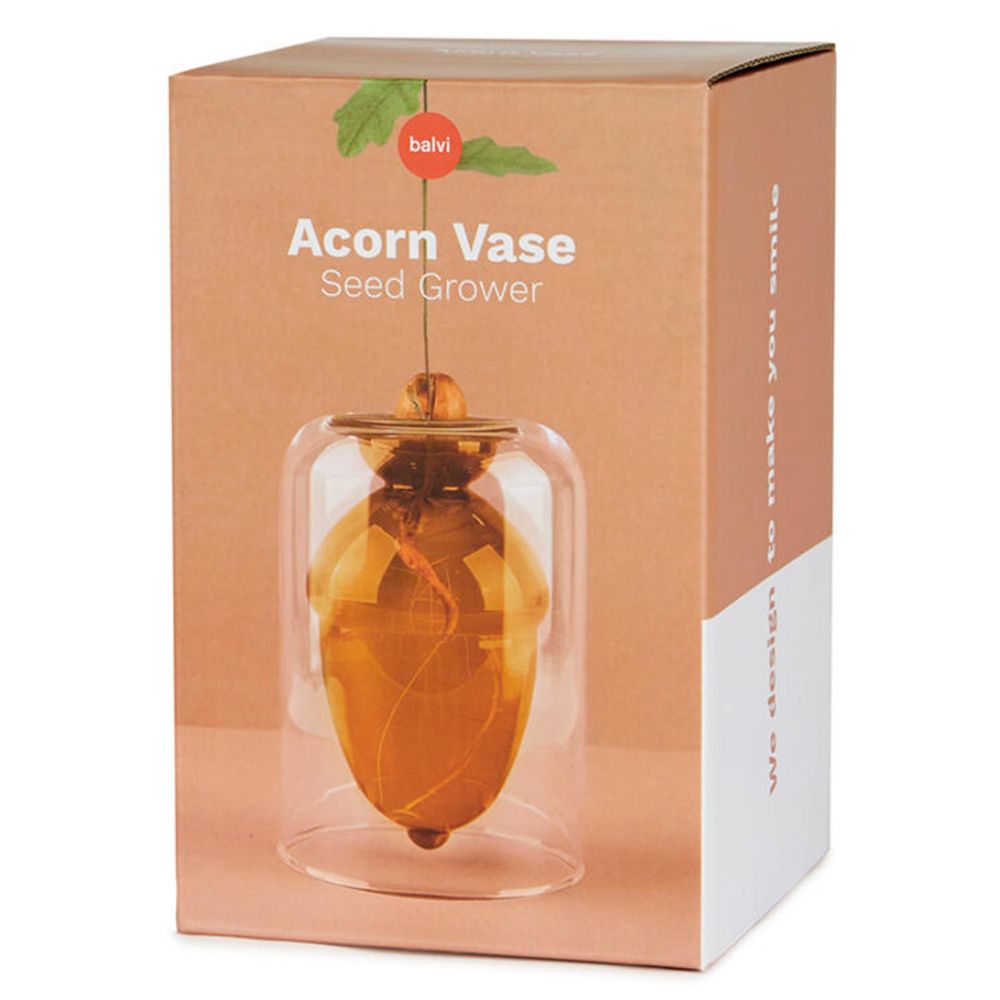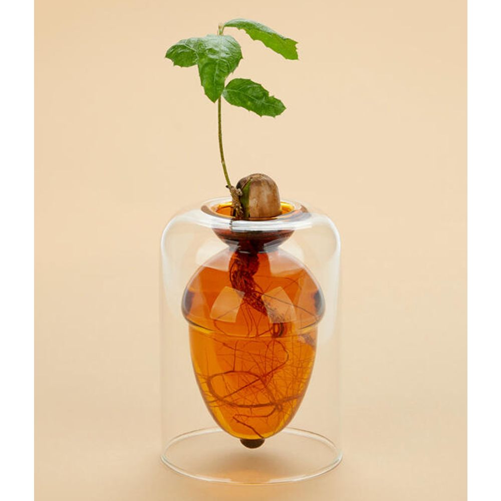 El Florero Acorn de Balvi tiene forma de bellota, evocando la naturaleza y un estilo orgánico. Está pensado para funcionar como florero —y también como “semillero elegante”—, permitiendo cultivar semillas (bellotas, huesos de aguacate u otras que germinen en agua) y observar las raíces y los brotes crecer desde su interior. Su diseño traslúcido de vidrio aporta ligereza visual y un toque natural al espacio, ideal como elemento decorativo en casa u oficina, ya sea con flores, ramas secas o directamente como pieza de decoración minimalista.