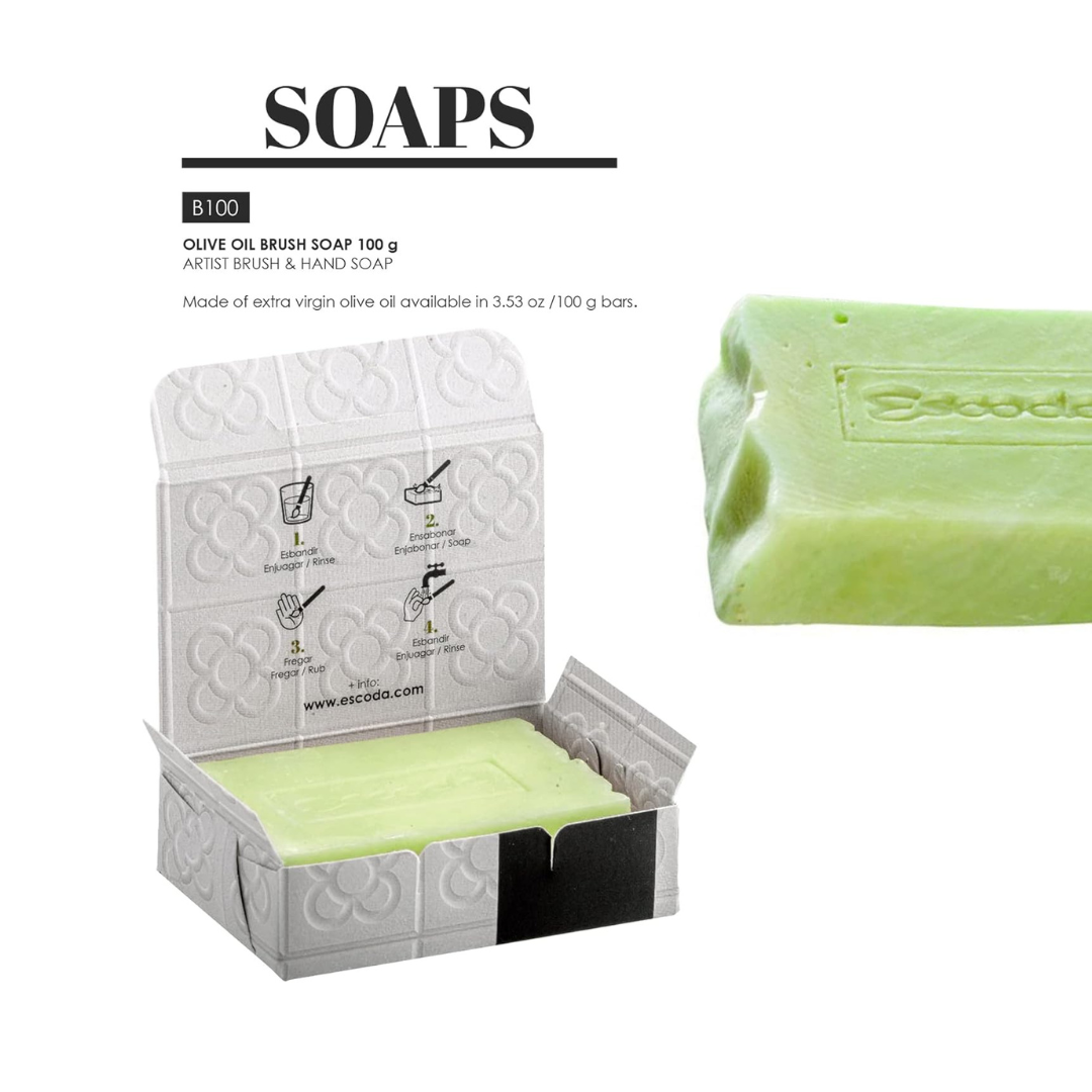 El jabón Escoda es un aliado imprescindible para artistas que buscan cuidar tanto sus herramientas como sus manos. Formulado con aceite de oliva natural, este jabón limpia a fondo sin dañar las cerdas de los pinceles, manteniéndolas suaves y en excelente estado por más tiempo. Su textura cremosa y aroma suave lo convierten en una experiencia agradable durante la limpieza, evitando la resequedad de la piel que suelen provocar otros productos más agresivos.