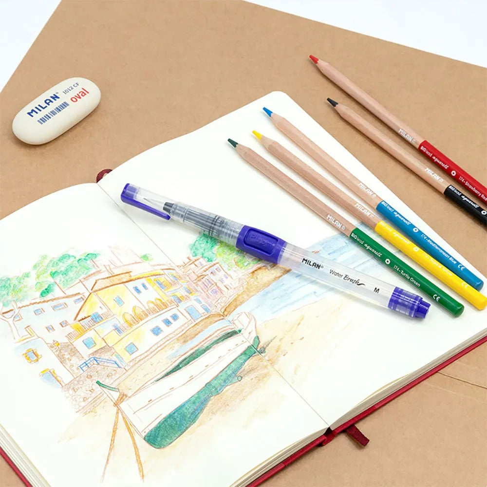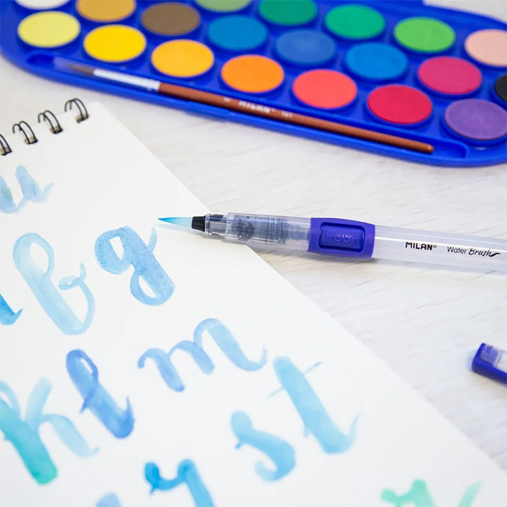 El Milan Pincel Recargable es una herramienta de escritura y coloración que destaca por su versatilidad y respeto al medio ambiente. Diseñado tanto para uso escolar como artístico, combina la suavidad del trazo tipo pincel con la practicidad de un sistema recargable, ofreciendo una experiencia cómoda y duradera.